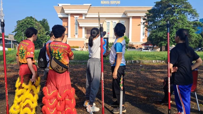 Komite Olahraga Nasional Indonesia (KONI) Tangsel melaksanakan senam pagi dan menghadirkan Cabang Olahraga (Cabor) yang turut serta memeriahkan acara ini salah satunya cabor panahan.
